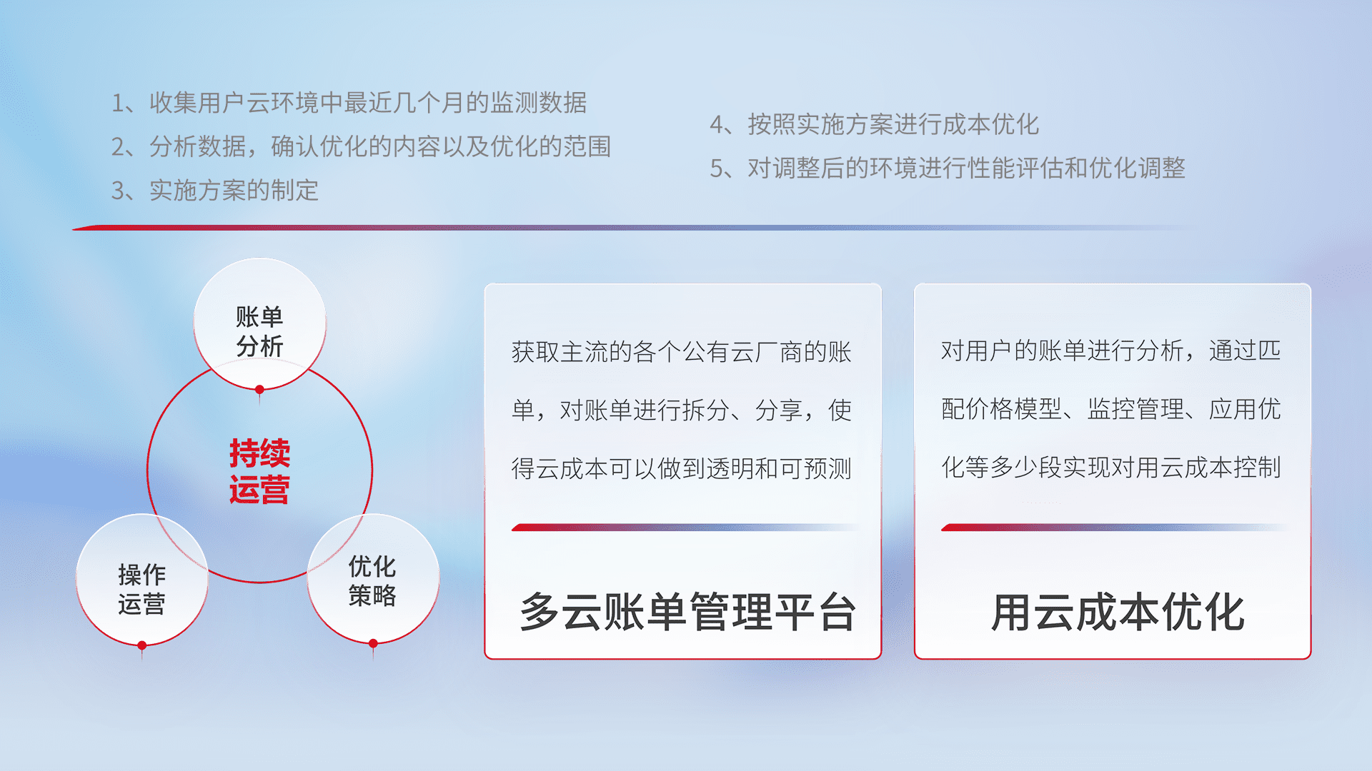监控业务系统资源开销,,对资源的消耗精确计量,,,实现费用的透明化管理,,,不断提升资源使用率,,,调整资源购买方式,,,降低资源费用成本,,,用云成本可预测、、用云费用可优化,,云资源配额有据可依。。
